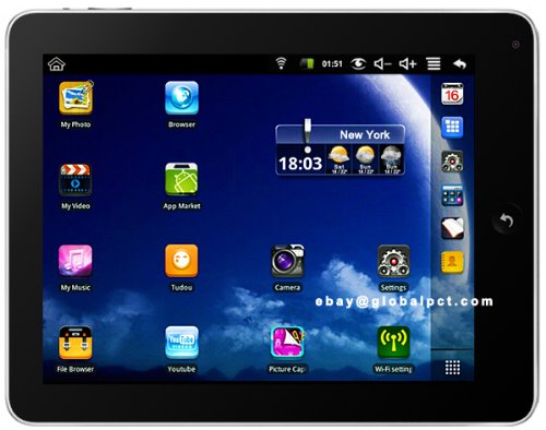 The BRAND NEW! MID 80003 Google Android 8" Tablet PC with Leather Case Feature ::: Show products detail 2GB Flash Memory, High-performance CPU+300MHZ DSP WM8650 CPU Processor w/ 800MHZ, Google Android 2.2 256MB Memory RAM, 8 inch TFT 16:9 Touchscreen, Micro Card Slot, Instant Online Communication (MSN, Skype, etc.), Card Reader Slot Support up to 32GB, 3G Function, 800 x 480 Resolution, Full Touchscreen Built-in WiFi 802.11 b / g, Built-in Speaker 8/1W, Built-in Microphone, Built-in 3 MP Camera