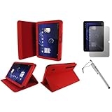 rooCASE 3n1 Multi-Angle (Red) Folio Case Cover / Anti-Glare Screen Protector / Capacitive Stylus for Motorola XOOM Android Tablet