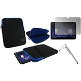 rooCASE 3n1 Super Bubble Neoprene Sleeve Case Cover / Anti-Glare Screen Protector / Capacitive Stylus for Motorola XOOM Android Tablet (Black / Dark Blue)